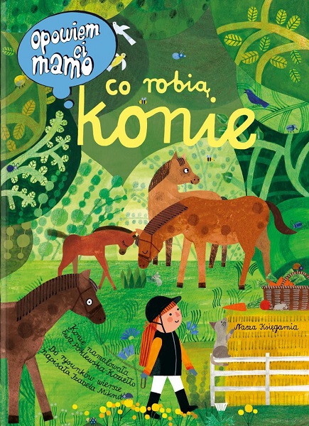 "Opowiem ci, mamo, co robią konie" to wyjątkowa pozycja dla wszystkich małych miłośniczek i miłośników tych pięknych zwierząt. Spotkacie tu konie, kucyki, koniki polskie, rzadkie zebryny oraz zebrule, a także te zupełnie wymyślone: jednorożce czy centaury. Dowiecie się, czym się różni cwał od kłusu i galopu oraz co zapleść z końskiej grzywy. Poznacie mnóstwo końskich maści: w tym szampańską, myszatą i tarantowatą. Zajrzycie też do stajni, by odkryć, w co się ubiera jeździec, jak jest skonstruowane siodło oraz co konie jedzą i jak spędzają wolny czas. Dzięki pięknym, pełnym szczegółów ilustracjom Ewy Poklewskiej-Koziełło sprawdzicie swoją spostrzegawczość, wyszukując ukryte detale i rozwiązując zagadki.